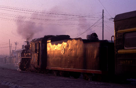 | The following morning and time for one final shot before departing for Harbin and the south. It's 8.00am and the first rays of the morning sun glint on the tender of No.30 at Weihe station on 27 December 2001. |