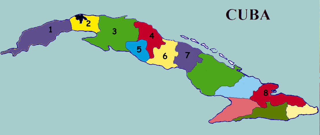 | KEY TO MAP 1. West of Havana 2. Havana region 3. Matanzas 4. Villa Clara 5. Cienfuegos 6. Sancti Spiritus 7. Ciego De Avila 8. Holguin |