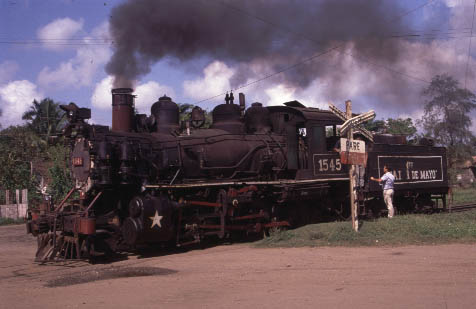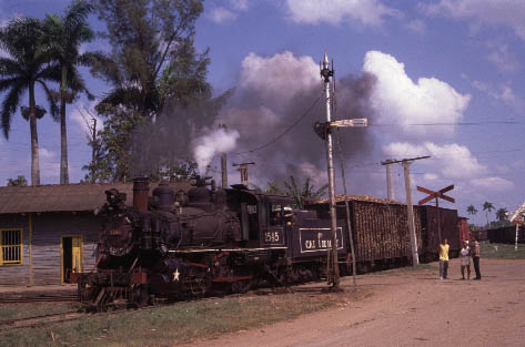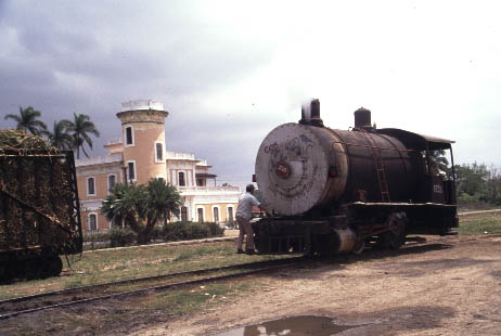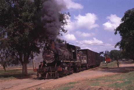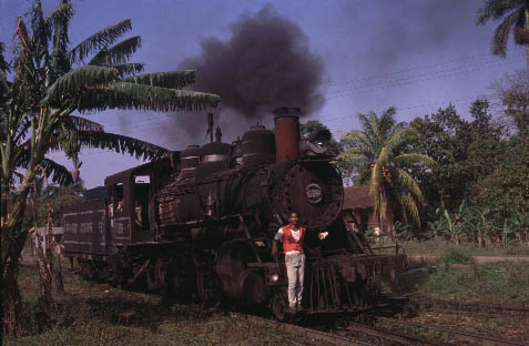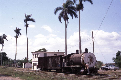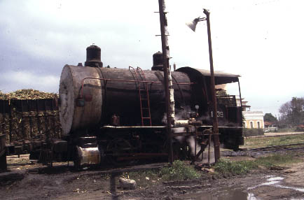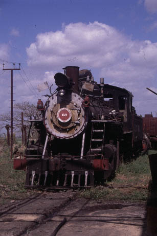 | CIENFUEGOS - STANDARD GAUGE Antonio Sanchez, Cuidad Caracus, Primero de Mayo and Marta Abreu Whilst Cienfuegos is probably best known for its narrow gauge systems there are several interesting mills in the region using standard gauge locomotives. Cuidad Caracas continues to see regular steam operation both in and around the mill and on the mainline whenever the diesel refuses to co-operate. Antonio Sanchez also uses steam for shunting and to the adjacent loading point. Primero de Mayo has been closed for the past two seasons with intermill workings handled by diesels. This is particularly disappointing as the line presents a number of scenic opportunities including an overbridge across the Great Cuban Freeway. Marta Abreu mill has also been closed for the past two seasons and cane taken to Mal Tiempo. This has meant that there has been no work for Baldwin 0-4-0F No.1239 which was the largest fireless locomotive in Cuba until the rebuilding of Baldwin 2-8-0 No.1664 at Noel Fernandez mill in 2000. It now remains to be seen whether No.1239 will be moved to another mill (Mal Tiempo?) or will continue to languish at Marta Abreu. |