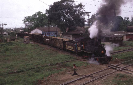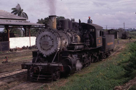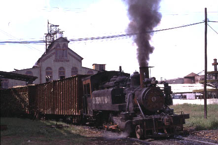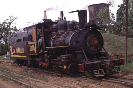 | HAVANA REGION Amistad con los Pueblos, Gregorio Arlee Manalich, Ruben Martinez Villena and Boris Santa Luis Coloma Most enthusiasts arrived in Havana, and the region to the south-east of the capital provided an excellent introduction to the island's steam treasures. As with many Cuban sugar mills the amount of activity varied from season to season and in some years mills were closed and cane was worked to other mills via the FCC or even by road. Amistad con los Pueblos was one mill which rarely, if ever, seemed to be open. However cane is grown in the fields surrounding the mill and then taken to Hector Molina for processing. This meant that steam was still to be found in the shed area of the mill and inter-mill workings could provide considerable interest. Gregorio Arlee Manalich was of particular interest since this mill is served by lines of different gauges. The mill had a fleet of standard gauge locomotives and also a number of 2'6" gauge locomotives. Over the years the ubiquitous supplies of black paint, the traditional livery of MINAZ locomotives, was supplimented by a range of more interesting colours and mills were encouraged to take a greater pride in their locomotives. Thus in 1998 the locomotives there were in a fetching shade of brown and more recently they have appeared in a light blue livery. Gregorio Arlee Manalich was one of the last mills to retain working steam and it is not beyond the realms of possibility that it may continue to use them occasionally but this should certainly not be depended upon. |