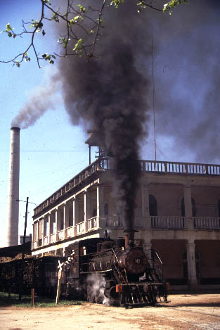 | The same locomotive 'brews up' after a water top - most Cuban locomotives are oil burners and could be relied upon to produce volcanic exhaust even on the hottest of days |