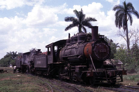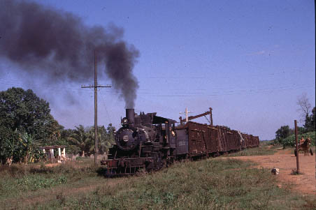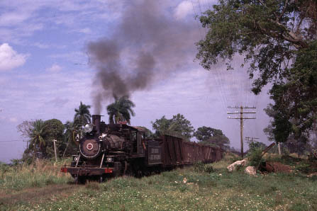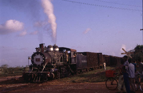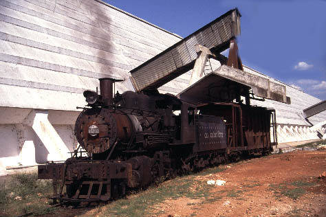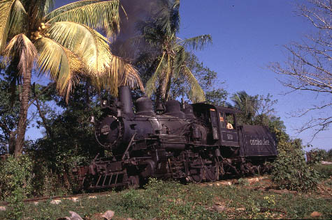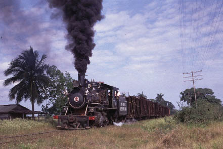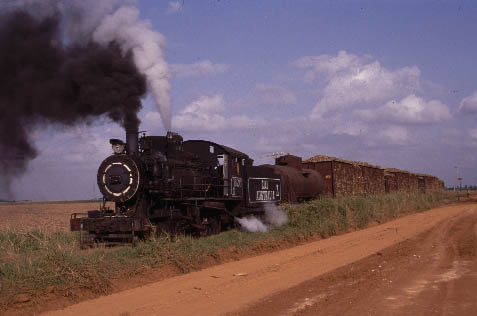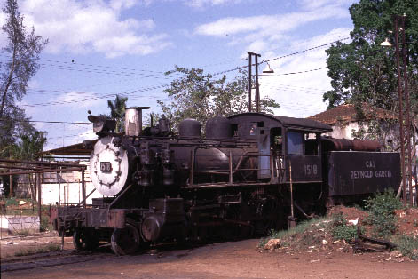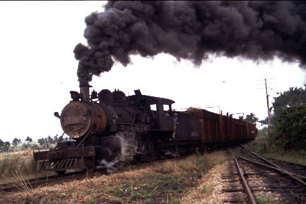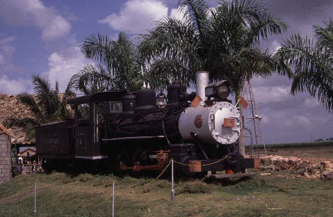 | Puerto Rico Libre is now closed and intermill working is by diesel. Baldwin 2-8-0 No.1910 is seen there in 1996 |