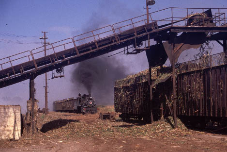 | No.1415 arriving at one of the loading points or acopios. The cane is chopped before being loaded into wagons. |