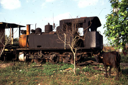 | Julio Reyes Cairo is also closed but in the mid to late 1990's had some interesting locomotives in store including Borsig 0-6-0T No.1123 and Henschel 2-4-0T No.1124. This was possibly my least favourite steam location on the island. Set in an area of economic disadvantage - even by Cuban standards - the locals there had a reputation for trying to sell you anything - their own grandmothers included (or their sisters!!) Sometimes things could get a little hostile and thefts from visiting enthusiasts were not unknown. |
