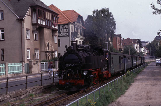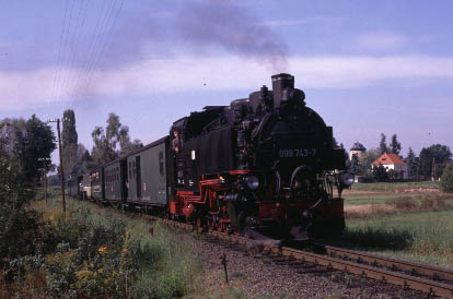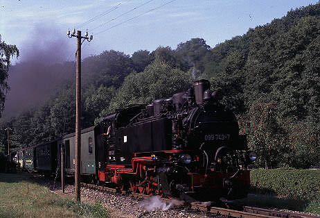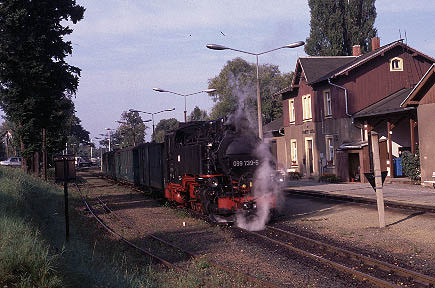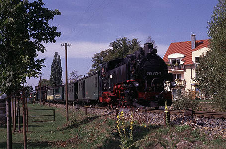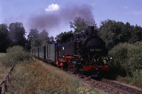 The Traditionsbahn-Radebeul are a private group who also operate an occasional tourist train on this line featuring a Saxon-Meyer 0-4-4-0 locomotive and traditional coaches, bringing an added interest although this is not strictly 'working steam'. |
