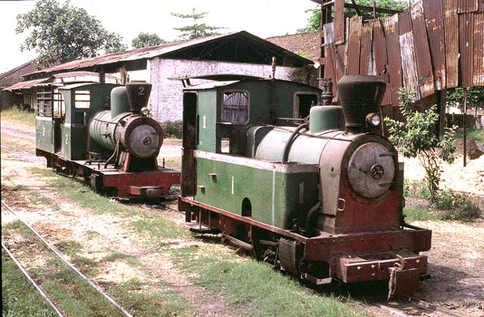 | JAVA - ISLAND OF FIRE AND STEAM With steam operations in Cuba now little more than a parody of what they once were, the mantle of 'Steam In Paradise' must now surely belong with the Indonesian island of Java. The common factor between the two countries is that the steam operations are seasonal, bringing harvested sugar cane into the mills for processing. In the case of Java the season lasts from early June until September and whilst much of interest still remains, the present operation is a shadow of what it once was. In 2004 only 14 mills were still using steam and in most cases the locomotives were only being used to move cane wagons from the road delivery yards into the mill. Honourable exceptions were Asembagus and Olean where cane trains from the fields are still steam hauled. The bonus for lovers of steam power however is that many of the mills retain steam powered stationary engines to operate the crushing plants inside the mills themselves. Many engines are of Dutch origin as well as some produced by British manufacturers. The pictures on these pages were all taken during a three week visit in August 2004. A full trip report appears on its own separate page. For a comprehensive overview of steam operations in Java, both locomotives and mill machinery it is essential to see Rob Dickinson's pages on his International Working Steam website. Rob is the acknowledged expert on steam in Java and my own solo trip, which I did mainly using public buses to access the various mills, would not have been possible without his help, advice and guidance, for which I am totally indebted. |