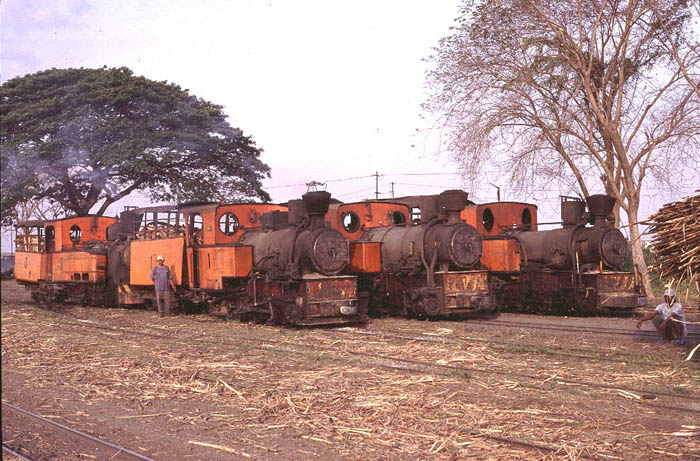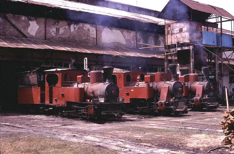 | The two mills are relatively close together with the village of Slawi standing between the two mills. I caught a bus from Jatibarang into Slawi and then completed my journey out to Pangka by horse drawn taxi ..... a pleasant and most interesting way to arrive at the mill. The morning shift was over and all the locomotives were on shed awaiting the start of the next shift at 2.00pm |