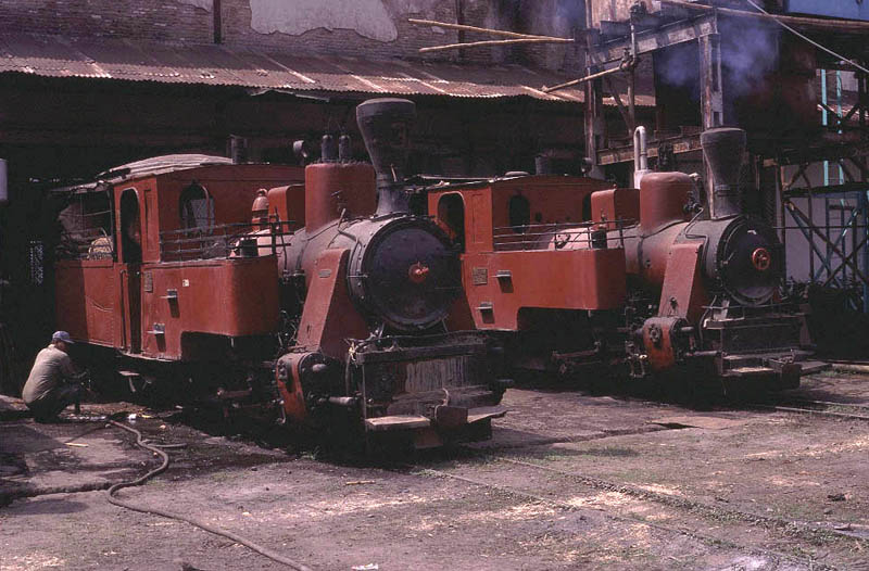| Who would believe that a steam scene such as this could survive into the C21st? In addition to the Jung 0-6-2T's No.2 and 3, also outside the shed was Orenstein and Koppel 0-8-0T No.9 (built in 1914) Three engines with just short of 270 years of combined service! (9 August 2004) |