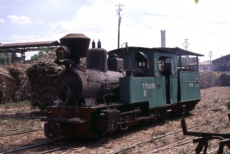 | Hartmann 0-8-0T No.12 (built 1912) stands at the mill end of the road delivery yard ready to propel wagons into the mill. The mill lines at Sragi are all built to 600mm gauge. |