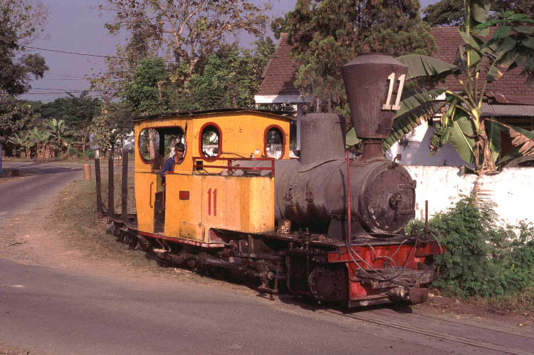 | Orenstein and Koppel No.11 catches the low afternoon light as it shunts a single empty wagon at the western end of the road delivery yard.. This was actually the last afternoon of my visit to Java and Gempolkerep certainly left me with some golden memories in every sense. |