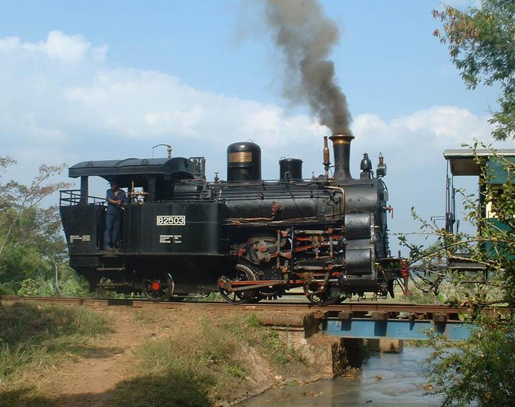 | Class B25 0-4-2T No.2503 crossing a small river bridge prior to ascending the rack to Bedono |