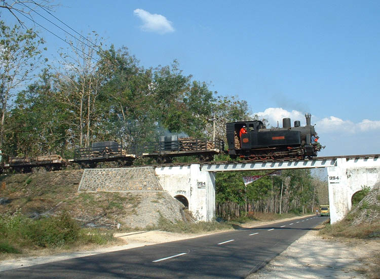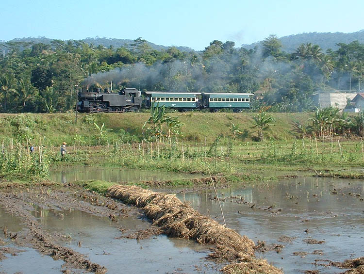 | BASHING JAVA BY BUS 5 - 25th AUGUST 2004 Unable to take part in Rob Dickinson's annual car-based trip to Java in 2004 due to the dates not co-inciding with my school holidays and being generally unwilling to take part in group trips anyway, I was persuaded by Rob that it would be possible to tour Java and visit the main steam worked mills using public transport - meaning in the main travelling by public bus. Armed with a Berlitz phrase book, a Nelles map of Java and copious notes generously provided by Rob and Florian Menius, I therefore set out to 'bash Java by bus'. Wednesday 4th August - Friday 6th August I booked my flights from London to Jakarta with Gulf Air. This involved a two-legged journey, initially from Heathrow to Abu Dhabi and then from Abu Dhabi to Jakarta. However on Wednesday 5 August the first leg of the flight was initially delayed some two hours as a result of bad weather on the previous day. Having boarded the plane we were then informed that it was suffering a mechanical problem to do with the air conditioning and cabin pressure system and that we would be further delayed. We were then off-loaded and returned to the departure lounge. After nearly five hours without proper information and no consultation passengers to Jakarta were given boarding cards for a totally different flight!! This took us to Muscat where we then put into the Holiday Inn for 14 hours. Then we were flown from Muscat to Abu Dhabi where we caught a flight to Jakarta (which passed almost directly over Muscat) and arrived exactly 24 hours late. Appalling service, total absence of information, indifferent ground staff and no hint of an apology. The moral - fly to Jakarta using KLM, Emirates or Singapore Airways. Avoid Gulf Air at all costs (in the event of receiving a proper apology and decent compensation I will amend the above advice!!!) if you want to be sure of a decent journey to the Far East!! On arrival in Jakarta I took the airport bus (10,000Rp = �0.75 or $1.10) to Gambir station and caught a train to Cirebon on Java's north coast. This was a three hour journey and an 'Eksecutiv' ticket cost 50,000Rp. I took a 'becak' (bicycle taxi) from the railway station to the Hotel Pinus in Cirebon (180,000Rp) where I finally met up with the Enthusiast Holiday group being led by Rob Dickinson. Saturday 7th August Travelled with Rob Dickinson to Tersana Baru mill which is to the east of Cirebon. A total of seven locomotives were in steam - No. 1 0-8-0T Du Croo and Brauns (Built 1926)* No. 2 0-8-0T Du Croo and Brauns (Built 1928)* . No. 3 0-8-0T Jung (Built 1925)* No. 6 0-8-0T Orenstein and Koppel (Built 1929)* No.11 0-8-0T Du Croo and Brauns (Built 1929)* No.18 0-8-0T Jung (Built 1923)* and No.20 0-8-0T Maffei (Built 1911)* The locomotives were all engaged in bringing cane trains from the road transfer yard into the mill which was done by means of pushing the loaded wagons from the rear. Locomotive livery is orange. * A full list of locomotives currently and formerly located at all of Java's sugar mills can be found on Rob's site Sunday 8th August To avoid conflicting with the Enthusiast Holiday group, I caught a bus from Cirebon to Tegal - a journey of about two hours and costing 5000Rp. I booked into the Hotel Gren (AC-room for 120,000Rp) which is a short bus ride from the main bus terminal and just to the west of the town centre. Most large towns have a long distance bus terminal which is usually located on the outskirts and from which it is necessary to catch either a small minibus or take a becak into the centre of the town. In some cases it is easier to locate a hotel close to the bus terminal to avoid having to adopt either option. Once booked into the hotel I caught another bus towards Semarang and alighted shortly after Comal from where I caught a minibus to Sragi mill. This mill has recently lost its field working and once again locomotives were confined to pushing trains of loaded cane wagons into the mill. Five locomotives were in use, all sporting a light green livery. These were - No. 1 0-4-2T Krauss (Built 1899) No. 7 0-10-0T BMAG (Built 1928) No.10 0-4-0T Henschel (Built 1925) No.12 0-8-0T Hartmann (Built 1912) and No.16 0-8-0T Hartmann (Built 1912) From Sragi I retraced my steps back to Tegal and Hotel Gren. Monday 9th August Jatibarang and Pangka mills are both in close proximity to Tegal and can be visited in a full day. I therefore caught a minibus from the centre of Tegal to Slawi and then another bus to Jatibarang. Here it was necessary to report to the gate security. After signing in, I was taken to the main offices where a permit to visit the mill was issued costing about 50,000Rp. This is normal practice at most mills and presented no difficulties despite my non-existent Indonesian and the limited English spoken by mill staff (with some notable exceptions) At some mills the road delivery yard is outside of the mill perimeter and therefore no payment is necessary. Locomotive sheds are however always inside the mill and require a permit before entering. At Jatibarang locomotives haul the cane trains from the road delivery yard into the mill and this provides for some good action shots as they cross the road and run in towards the off-loading point. Locomotives are in a light green livery and on 9 August locomotives in use were - No. 5 0-8-0T Jung (Built 1916) No.10 0-8-0T Jung (Built 1911) and No.12 0-8-0T Orenstein and Koppel (Built 1931) Also apparantly in working order were - No.1 0-6-0T Couillet (Built 1910) and No.2 0-6-0T Couillet (Built 1910) Shortly after 11.00am I left Jatibarang and returned to Slawi from where I took a horse drawn taxi to Pangka mill which is to the east of Slawi. Again it was necessary to pay to enter the mill. The working locomotives were all to be found outside of the main shed where they remained until 2.00pm when they moved off with the new shift to carry out their various duties. This included hauling loaded cane wagons from the road delivery 