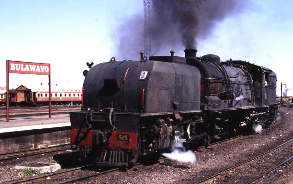 Whilst there are a considerable number of these engines preserved in South Africa, the few remaining examples in everday use are mainly to be found in the freight yards in and around Bulawayo, which is Zimbabwe's second city.�� A small number have been hired out to industrial concerns in Zimbabwe such as Hwange coal mine and the cement works at the appropriately named town of ........ Cement! Three other engines work across the border at a copper mine in Botswana.�� Bulawayo shed is perhaps the last great steam shed in the world with up to 12 engines in working order and several others in the attached works.�� Surrounding the shed area are a large number of dumped engines which serve as a reminder of the once extensive steam fleet in this former British colony.