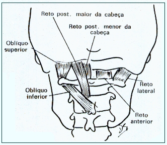 | Eretor da espinha; músculos sub-ocipitais (Reto posterior maior da cabeça, Reto posterior menor da cabeça, Obliquo superior, Obliquo inferior); Esplênios e Semi-espinhais |
