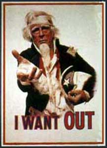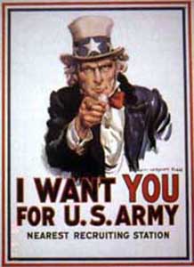 這是海報設計的作品,通常是用『諷刺畫派』來說明。第一章海報設計是一次與二次大戰期間,美國的募兵海報。這一張作品當然以人物,色彩,線條來表達美國需要國民投入國防建設與軍隊,而海報背後則表達美國的富強與權威,或是說:『海報的整體印象,是在敘述美國的富強與權威,這樣的故事』第二章則是越戰後期期間的海報設計作品。這一張作品也是以人物,色彩,線條來表達美國在越戰時『軍事』的陷入泥沼與灰頭土臉,而海報的背後則表達美國的可憐像,或是說:『海報的整體印象,是在敘述美國在越戰上能力受到考驗,在經濟上權威受要挑戰,這樣的故事』