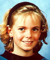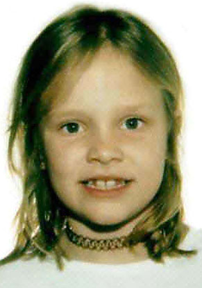 | Molly Anne Bish, 16 Warren, MA Holly Piirainen, 10 Sturbridge, MA Adam Walsh, 6 Hollywood, FL Polly Klaas, 12 Petaluma, CA Sarah Pryor, 9 Wayland, MA Ashley Pond, 12 Oregon City, OR Miranda Gaddis, 13 Oregon City, OR Danielle Van Dam, 7 San Diego, CA Julie Holmquist, 16 Hallock, MN Samantha Runnion, 5 Stanton, CA Amber Hagerman, 9 Arlington, TX Megan Kanka, 7 Hamilton Township, NJ Jaclyn Dowaliby, 7 Midlothian, IL Anthony Martinez, 10 Beaumont, CA Holly Wells, 10 Soham, England Jessica Chapman, 10 Soham, England Jeremy Higgins, 16 San Jose, CA Charlie Keever, 13 San Diego, CA Dena Dean, 16 Tulsa, OK Lisa Haenel, 14 Glen Burnie, MD Justin Lewter, 8 Mecklenberg, NC Maddie Clifton, 8 Jacksonville, FL Dustin McKee, 17 Kenton, OK Michele Dorr, 6 Silver Springs, MD |