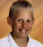 | Juan Delgado, 12 La Habra, CA Jackeline Saavedra, 6 Norwalk, CA Kayla McKean, 6 Clermont, FL Daniel Hohenstein, 6 Paradise Pines, CA Lance Guevarra, 6 Big Water, UT Cassidy Senter, 10 Hazelwood, MO Krystal Baker, 14 Texas City, TX Nicolas Zavala, 12 Oxford, IN Erik Gomez, 4 Memphis, TN Kathleen Marie Flynn, 11 Norwalk, CT Amanda "Milly" Dowler, 13 Walton-on-Thames, Surrey, UK Adam Finch, 4 Panama City, FL Dalton Mesarchik, 7 Streator, IL Peggy Chappell, 6 Birmingham, AL Jeffrey Curley, 10 Cambridge, MA Opal Jennings, 6 Saginaw, TX Randy Laufer, 15 Clare County, MI Kristy Degg, 14 Bradenton, FL Tristan Jensen, 14 Redlands, CA Nicole Parker, 8 Tarzana, CA Marquis Jobes, 13 Chesterfield, VA Lorin Easterling, 11 Slidell, LA Michael Lyons, 8 Yuba City, CA |