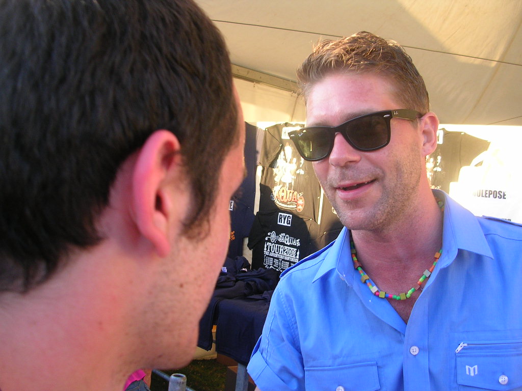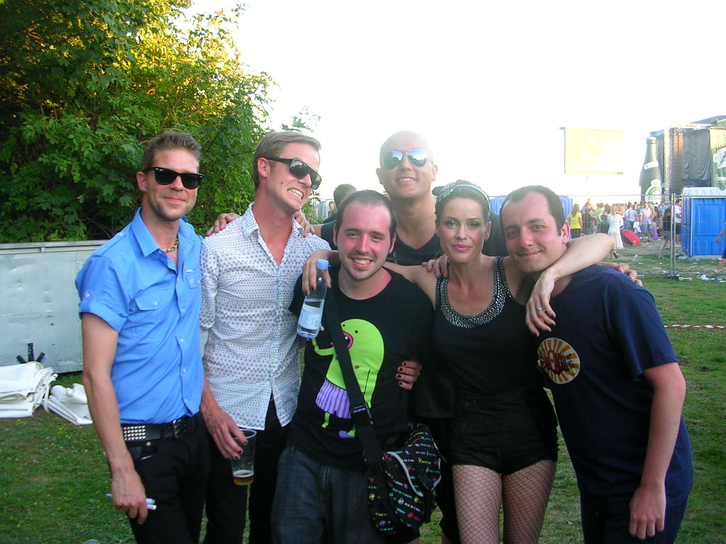 Once the concert had finished, it was time to head to Aqua's stand, as the band would be signing autographs to the patient fans. We had to wait for almost an hour, trying to survive to the pushes. I had forgotten to bring an Aqua CD for the signatures session, so I had to be content with the Aqua cottonbag that I had bought in the morning. It was hard to wait for my turn into the first row, everyone was pushing and trying to jump the queue. Finally, I could ask Claus to sign the cottonbag. Later, Lene came by and autographed the bag. I asked for a picture with her, to which she replied where I was coming from. When I told her that I had traveled from Barcelona with my boyfriend, she pronnounced the name of the city in perfect Spanish and she laughed and said that we were crazy, but she was happy knowing that people from other countries still cared for the band. Then, René approached and, before signing, he asked me about the concert and dedicated some spanish words to us. The last one to sign my cottonbag was Søren. I told him that I was the webmaster of Aquarama, and he was glad to meet me, as we had shared messages on Aqua's official MySpace. He thanked me for having traveled to Denmark. Later, he told to my boyfriend to wait, as we were having the chance to get into the backstage to take some private pictures with the band. It was funny to hear Søren and Lene talk about us and Aquarama.