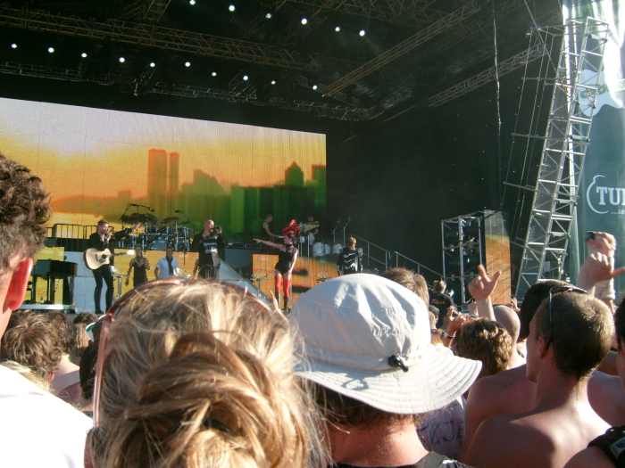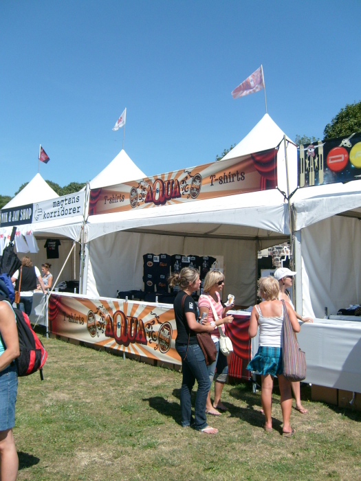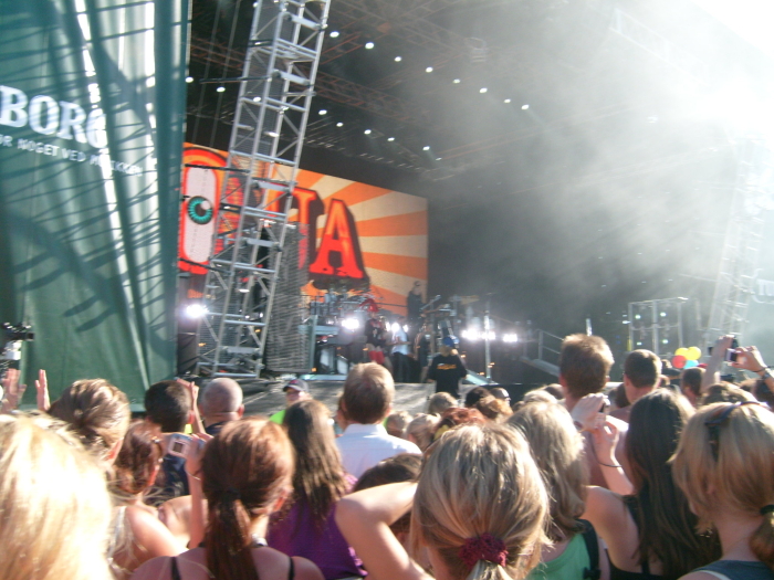 After two days of tourism around the beautiful Copenhagen, the 27th came by and a bus lead us to the VIP area at Valby Park, where the concert would take place 5 hours later. The Grøn Liga was a fenced zone near the main stage, where you could sit and have free drinks and meals, assisted by the kindest personnel of all. You could also walk into the main area of Valby Park, and so we did to buy some Aqua T-Shirts at the official merchandise stand (too bad that the sweatshirt with the new logo was soldout). The shop assistant was very kind and congratulate us for having came from Barcelona just for Aqua. He was wearing a Hej Matematik polo shirt, but it wasn't on sale! Then, we went around the crowded park, we snooped around every stand, we took part on the SingStar contest and then we went back to the Grøn Liga zone, where we finally got to meet John and Lasse. We spent the remaining hours talking about Aqua and burning under the implacable sun.