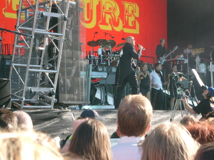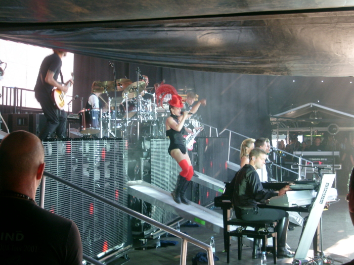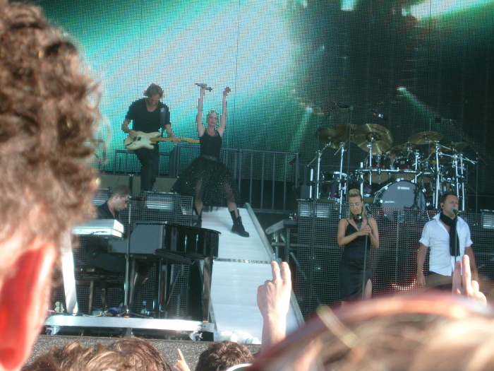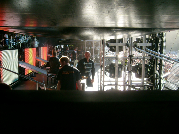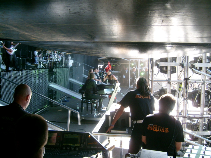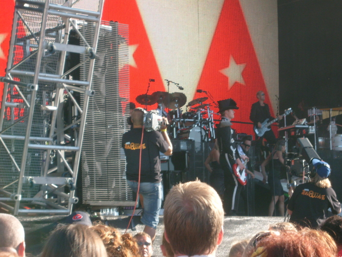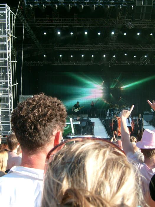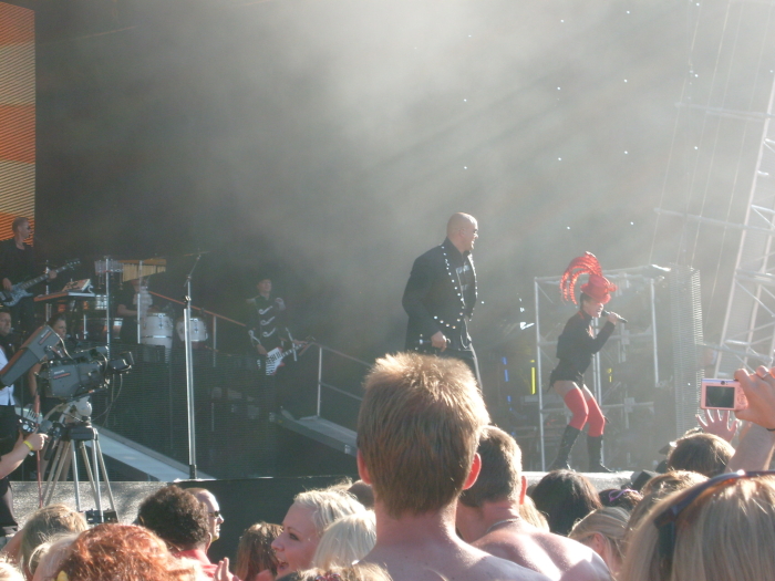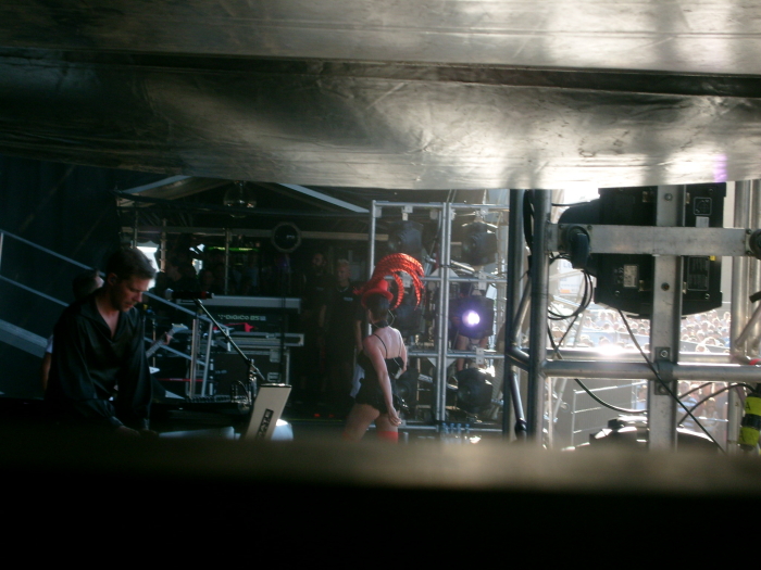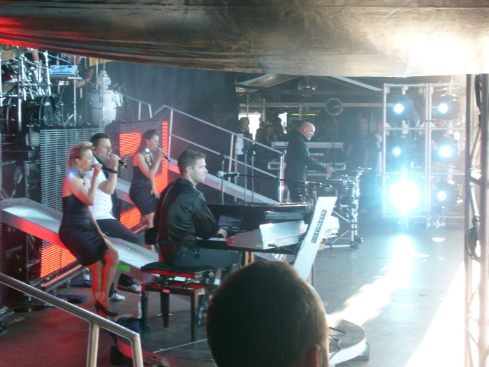 Too bad, we had to walk to the backstage access during the Shakin' Stevens performance, so we missed part of it. From the backstage, you didn't have the best point of view of Lene, René or the screens, but you could see the band and the crew very close, so it was worth it. Søren, Claus and René smiled at us from time to time. Some relatives of the Aqua members were also present there. We saw a paper with the official setlist, discovering that the new song is titled Back To The 80's, not Those Were The Days. After Lollipop (Candyman) (it rocked!), Turn Back Time (beautiful as always), Back To The 80's (amazing) and Freaky Friday (fun magic number, but from the side of the stage you could see part of the trick), it was time to rush to the general area again.