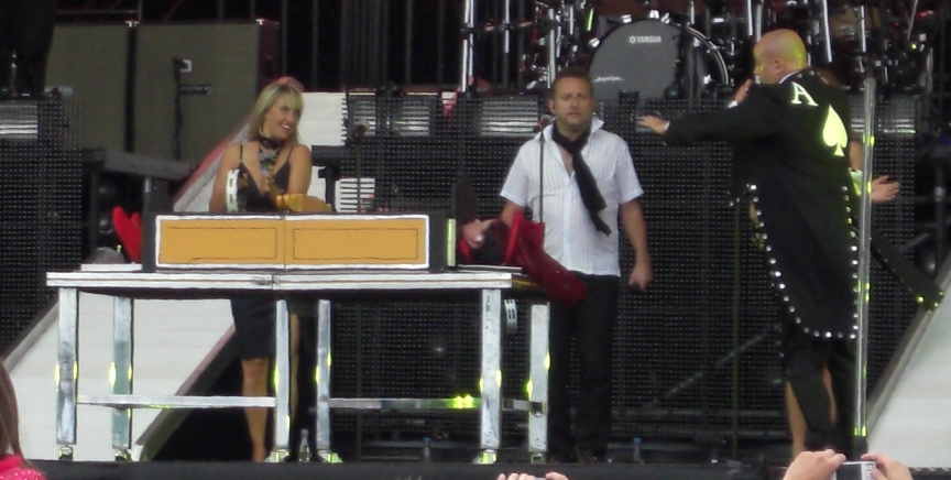 As you can see in the video above (thanks to Aquarama visitor Niklas for that!), Shakin' Stevens is a different version from 2001's recording, more electronic than rock. We can finally listen in a better quality the lyrics of the song, quite different than we previously thought! Lollipop (Candyman) mixes rock and electronic music with a great effect, most reviews coincide in saying that it was one of the best numbers of the concert.