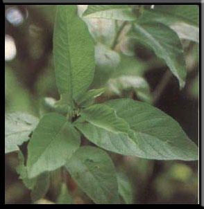 | Local Names: Lagundi (most dialects) Five fingers (Eng.) 5-leaves chaste tree (Eng.) Scientific Name: Vitex negundo L. Description: A shrucb growing wild in thickets and waste places. Its compound leaf has 3 to 5 leaflets. The flowers are blue and bell shaped. The small fruits black when ripe. Medicinal Values: Boil a handful of leaves in water to produce a glassful of decoction. Adults and children may drink a glassful of decoction three times a day. |
