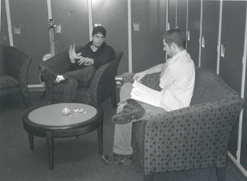 | ROB'S CONVERSATION QUOTES CONTINUED Rob: I have a shelter on me. Phoenix: Is that good? Rob: Also the sprinklers are kind of like probably six feet in front of me. Phoenix: So you're not going to get wet? Rob: I'll probably just get a little wet while the other guys are going to soaked. It's all good. LATER... Rob: It was fun. Phoenix: You ended up getting wet huh? Rob: Ended up getting soaked. I didn't get out of it. Rob: This is the beautiful room service, chicken fricassee. Mike: What does it smell like Rob? Rob: *puts nose near the bowl* Oh...BAD. Brad: Dude, I can't even believe you got that close to it! Rob: *laughing* It smells like- Mike: Dude, put the cover back on it. It smells like BO. Mike: The funniest part about chicken fricassee, is the evolution of Dave having to change the way he said it because the guy was laughing at him when he called up and asked for chicken frick-a-see. Rob: That is the skylight window of the kitchen where this chicken was prepared, and we're going to return it. Mike: Take it...back! *throws the chicken down @ skylight window* (I almost pissed my pants from laughing when I watched this. It's so completely classic!) Possibly The Most Revealing Rob Interview Interviewer: How much money do you have in your wallet right now? Rob: Let me see...I have 48 dollars (Joe took $200 or so. Sharing is caring...) Interviewer: What's the last porno you watched? Rob: Umm...I don't even know (Not so innocent anymore, are we, Mr. Bourdon?) Interviewer: Pabst Blue Ribbon or Old Milwaukee? Rob: I prefer water...I don't drink at all... (Good boy *pats head and grins*) Interviewer: Who in the Entertainment industry most deserves to get their ass kicked? Rob: I'm not sure...hmmm...I can't think of any right now... (Stop being nice, Rob. I can name a few...) Interviewer: What are some of your more difficult to fill backstage rider requests? Rob: Socks and underwear...so we can just go...on stage you sweat a lot and then we can just throw it out when we are done... (Attention Linkie Boppers: You can steal their undies from the trash! W00t!) Interviewer: What is your bathroom reading material of choice? Rob: I just kind of crap and get off the pot...I don't really read (That's the most romantic thing I've ever heard. Oh baby, I want you so badly now.) -92.3 Xtreme Radio Interview, July 31, 2002 |