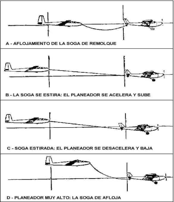 y a sobrepasar al avión (el planeador se colocará en posición de remolque excesivamente