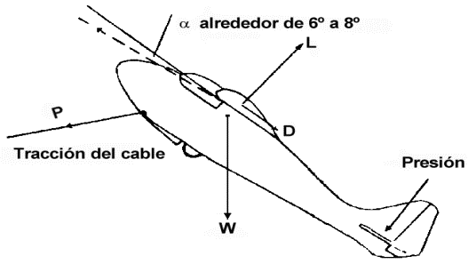 punto es que la tracción del cable sobre el planeador actúa bien en contra y por delante