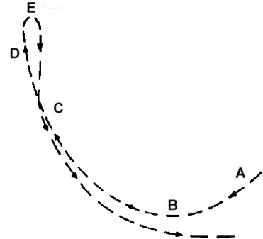 probablemente se encontrará por completo atrás. Desde el punto D el planeador continúa