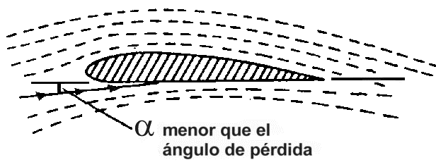 que vuela a un pequeño ángulo de ataque, sin estar en pérdida. El aire fluye