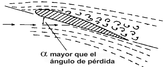 pérdida de sustentación del perfil y el ángulo al cual tiene lugar se denomina ángulo de pérdida. Resulta curioso comprobar que todos los perfiles alares entran