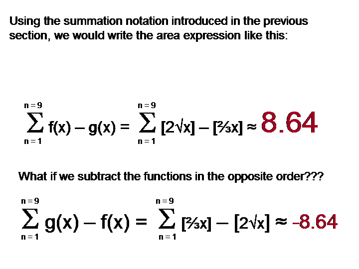 - Using summation notation, write the expression involved in determining this area.