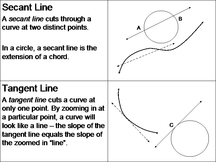 Given ANY interval on a smooth curve, there will exist a point at which the slope of the tangent line will equal the slope of the segment connecting the endpoints of the interval