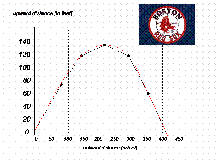 We're at Fenway Park in Boston - the Red Sox are playing the Yankees. There are two outs in the bottom of the ninth - the Yankees lead 5-4 but Johnny Damon is on first and David Ortiz is at the plate. He takes a 3-2 pitch and sends it rocketing upward at 92 feet per second and outward at 76 feet per second. The bad news, however, is that the ball is heading towards the deepest part of the ballpark and Bernie Williams is playing center field for the Yankees.