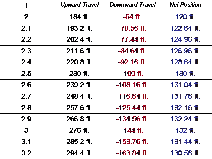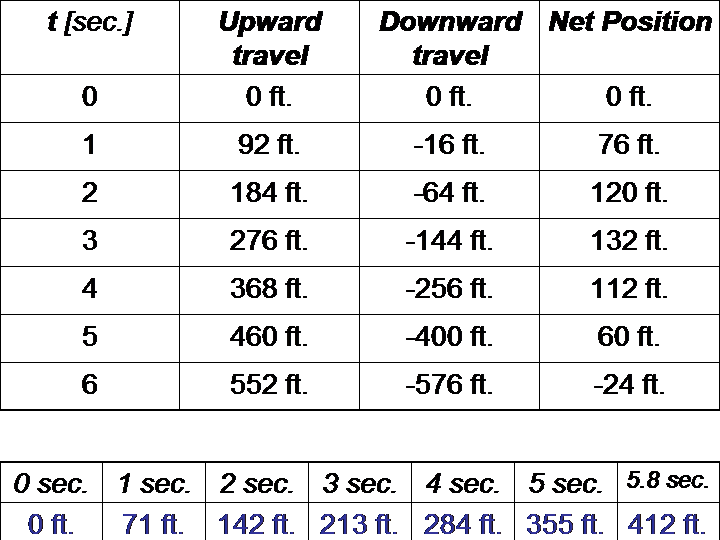 Let's take another look at the ball's upward/downward flight, this time with more intervals in our table: