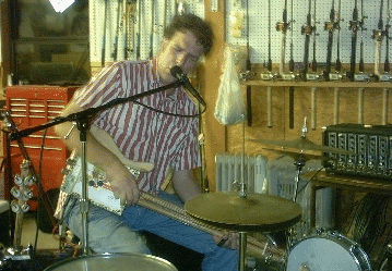 | About Johnny Lowebow�s performances: The average listener probably thinks Johnny Lowebow�s music sucks. He�s been shunned by the Memphis blues community. He described his appearance at the King Biscuit Blues Fest as an �invasion.� I even came across a blog that proclaimed him �The Worst Performer In The World �. Lately, he�s been making his rounds in Memphis punk clubs. Like I said, you either get him or you don�t. To me, Johnny Lowebow�s performances transcend �concerts� and gravitate toward �SPECTACULAR ACTS!� You see, he plays this homemade cigar box guitar that really shouldn�t work�but it does! The Lowebow cigar box guitar is plugged into TWO SEPARATE SCREAMING AMPS. Johnny doesn�t look at his hands when he plays. He goes by feeling (or �the Force�) and thus, correct intonation and tuning fall outside the typical Western 12 tone octave. It�s loud, it�s out of tune and it�s brutal. No�make that: BRUUUUUUUUTAL! He drives a huge set of drums and cymbals with a series of footpedals. Did I mention that he plays them barefoot. Tempo? What�s a tempo? Johnny don�t need no stinkin� tempos. He plays by feeling. The feeling of a true madman set loose on an unsuspecting public. And when Johnny�s playing, he never really STOPS at the end of a song. The tunes just flow together in a free form stream of consciousness. The audience never knows when to applaud, clap or run. You�re trapped. I really love Johnny Lowebow and want the world to love him, too. Check out his gig schedule (see link in yellow box above) and go see him. Buy a cd or two when you�re there. And when you�re ready to feel the force, buy a Lowebow. It will change your life. -Shane Speal July, 2004 |