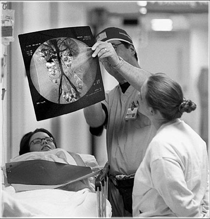 Rachel Dissell and her mom review the results of her angiogram with a hospital nurse.