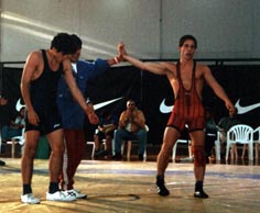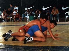 | En forma paralela a la disputa de la Copa por Equipos, se llevaron a cabo tres combates programados de la categor�a Mayores con el fin de que sirviera de preparaci�n para el Campeonato Nacional que se disputar� el 8 de diciembre. En estos combates participaron dos luchadores de nuestro club: Dar�o Cardozo (que retornaba a la competencia oficial despu�s una lesi�n en el hombro) y Mariano Buglione quien comenz� a luchar hace pocos meses y hac�a su debut en encuentros oficiales. Cardozo realiz� su primer combate contra el representante de River Plate y Campe�n Sudamericano Gabriel Palermo, quien lo derrot� por puntos (6 a 0) luego de los seis minutos de lucha. En su segundo combate venci� por puesta de espaldas -luego de ejecutar una efectiva pierna invertida- al representante de GEBA, Juan Romero. En tanto, Buglione perdi� su lucha ante Romero por puesta de espaldas pero dej� en el tapiz una muy buena impresi�n. |