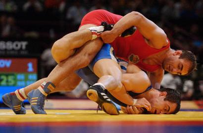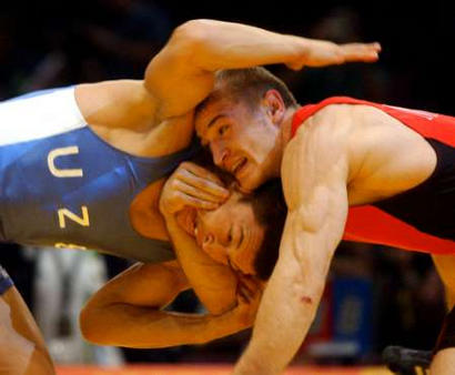 | El uzbeko Mansurov es tomado por el moldavo Tulbea en el combate decisivo por el t�tulo del mundo de la categor�a 55kg. Con s�lo 20 a�os de edad, el luchador asi�tico rompi� todos los pron�sticos al quedarse con la medalla de oro. |