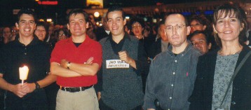 Los ciudadanos Carlos González, Raúl Contreras y Roberto Brol (con calcomanía de No más impuestos). El periodista José Eduardo Valdizán, acompañado de Ana Beatríz Asencio.