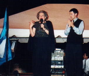 | Sede Anterior Fotografias Quinto Viernes de Luto Numerosas personas hicieron uso de la palabra. Aqu�, la ciudadana Magdalena Toriello, acompa�ada del Maestro de Ceremonias de esa noche, el ciudadano Giovanni Fratti, se dirige a los centenares de guatemaltecos que llenaban la plaza del monumento a los Proceres de la Independencia. Siguiente |