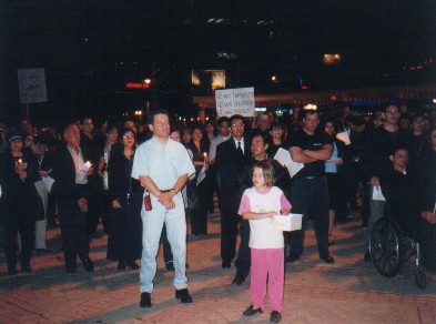 | Sede Atr�s Fotograf�as Viernes de Luto Primero fueron entre 800 y 1000 personas; pero cada vez somos m�s. El viernes 15 de junio de 2001, m�s de 2000 guatemaltecos,de todas las edades y condiciones, incluyendo familias completas, nos reunimos en El Obelisco a las 18:30 horas para cantar el Himno Nacional, depositar velas encendidas y protestar contra la corrupci�n y el abuso tributario. Siguiente |