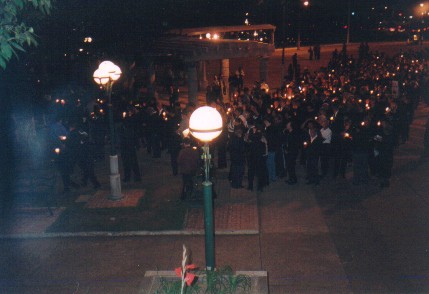 | Sede Anterior Fotograf�as Viernes de Luto Durante la reuni�n pac�fica, en el monumento a los Pr�ceres de la Independencia, los asistentes cantamos el Himno Nacional, y llevamos velas encendidas. Mientras damos la vuelta a la rotonda del Obelisco, nos acompa�an cientos de conductores de autom�viles, que hacen sonar sus bocinas. Cuarto Viernes de Luto Nacional |