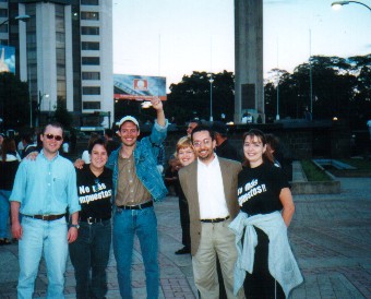 Mario Chacón, Lucila De León, Giovanni Fratti, Claudia Chacón, Alejandro Baldizón y Mónica Lehnoff, del equipo de Viernes de Luto. Atrás, a la derecha, el Obelisco.