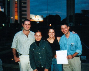 | "Chico" Corzo, Sylvia Gándara, Lucila De León y Giovanni Fratti muestran una hoja de firmas. |