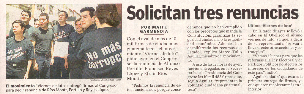 Finalmente entregamos más de 10 mil firmas solicitando la renuncia del presidente Portillo, del vicepresidente Reyes y del presidente del Congreso Ríos Montt.