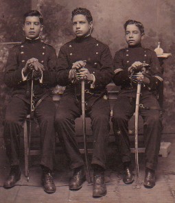 | Tercero, de izquierda a derecha, mi abuelo Jorge Jurado Reyes, con el uniforme de la Escuela Práctica | ||||||||||||||||||||