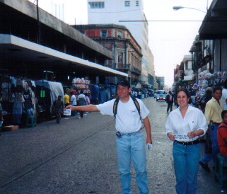 | Para el 13 de marzo de 2002, un grupo de políticos convocó a una manifestación. Dado que la situación de corrupción y de abuso en el país es extrema, el equipo de Viernes de Luto decidió participar aún sin tener relación alguna con los organizadores. En la foto, Raúl y Lucila reparten stickers de ¡Al bote los corruptos! en la Sexta avenida vacía. |