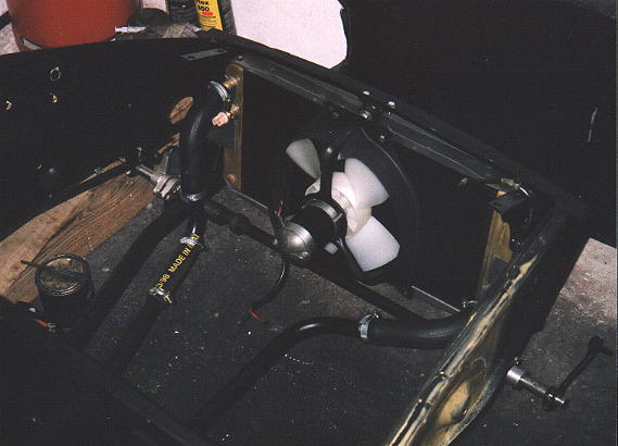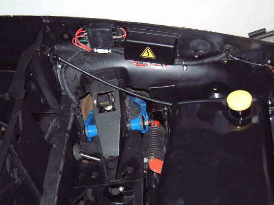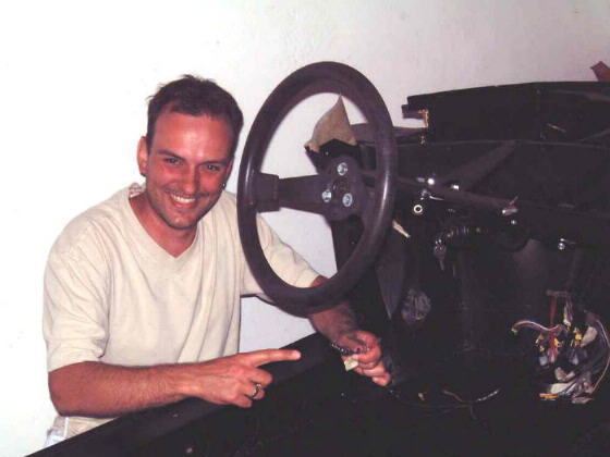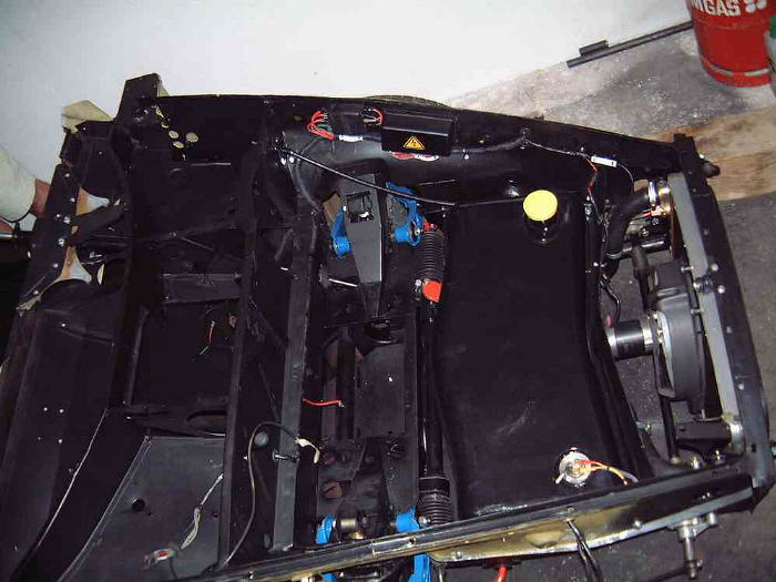 | Inzwischen war es Fr�hling geworden, es war nicht mehr so elendiglich kalt und so konnte ich mit der Montage der Bauteile fortfahren. Als erstes baute ich den K�hler ein. Die orginalen Gummiaufh�ngungen waren bestenfalls noch als Muster brauchbar aber der technische Gummihandel h�lt sogenannte Ger�tef��e bereit die mit kleiner Nacharbeit einwandfrei passen. Gummiteile schneidet man am Besten grob vor, als Schmiermittel eignet sich Siliconpaste oder Sp�lmittel, die endg�ltige Form erreicht man mit schleifen. F�r den K�hlventilotor hatte ich irgendwie die Distanzringe verschuselt, also schnell an die Drehmaschine und passende Teile aus Kunststoff drehen. Der Einbau der Welle f�r die Klappscheinwerfer machte keine Probleme, nur ist das Teil etwas unhandlich zum Einf�deln wenn man sich unbedingt als Einzelk�mpfer beweisen will. Eine richtige Fieselei ist die Montage der Hebelmechanik die, die Klappscheinwerferwelle mit den Scharnieren der vorderen Haube verbindet. Ich habe keine Reihenfolge gefunden bei der man sich nicht st�ndig selber im Weg ist. Als N�chtes baute ich die Tankschutzwanne und den Tank selbst ein. Die Tankschutzwanne lackierte ich, abweichend vom Orginal, beidseitig schwarz-matt. Den oberen Ausl�ufer der Wanne, der den K�hler oben abdeckt und die K�hlluft nach unten abf�hrt, hatte der Vorbesitzer abges�gt. Zun�chst �berlegte ich ob ich das Teil wieder anlaminieren sollte. Aber ich werde das Teil mit einer Gummilippe im Schlitz wieder montieren, denn so kommt man sp�ter einmal leicht an den K�hll�fter oder die Federn der Klappscheinwerfer. Nun folgte die Montage des vorderen Kabelbaums mit den zugeh�rigen elektrischen Bauteilen. |